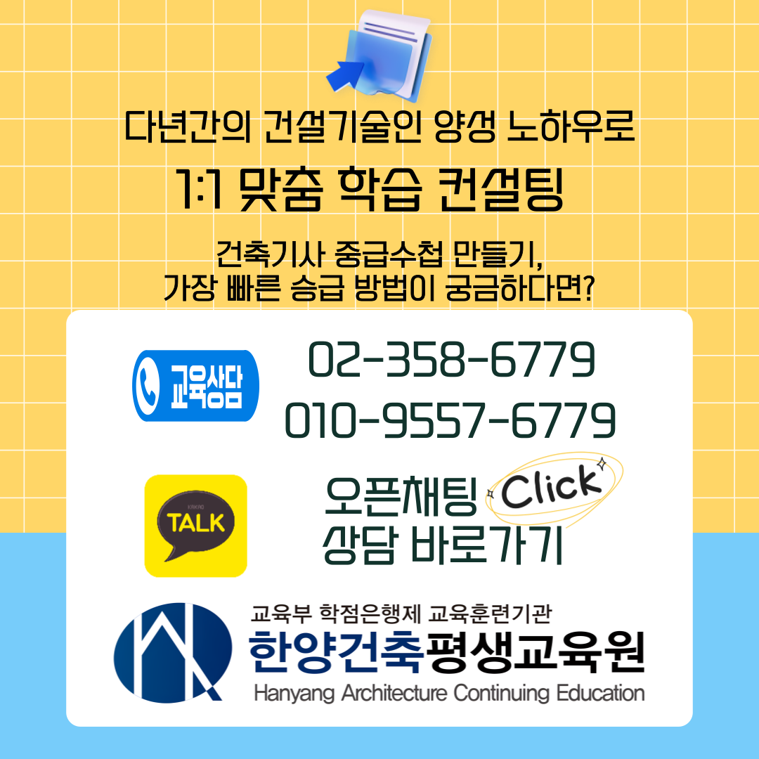 건설 특성화 평생교육원인 한양건축평생교육원은 다년간의 건설 기술인 양성 경험을 바탕으로, 각 개인에 맞춘 최적화된 커리큘럼과 행정처리 지원을 제공합니다. 이곳은 학기별 수강 신청, 학위 취득에 필요한 행정절차 안내, 취업 지원 등 다양한 서비스를 1:1 개별 학습 관리로 지원하고 있습니다. 따라서 이 교육원을 통해 건축기사 자격증과 건축공학 학위를 취득하면 가장 빠르게 중급 건설 기술인 경력 수첩을 발급받을 수 있습니다.