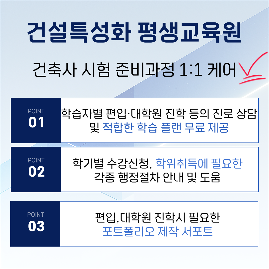 이를 통해 일정 수의 학점을 취득하고, 건축사 시험에 응시할 자격을 얻을 수 있습니다.