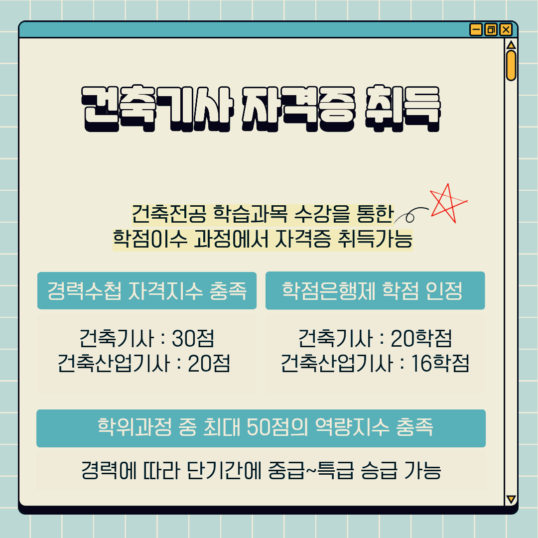 건축공학 학위 + 건축기사 자격증 동시 준비가 가장 빠른 루트입니다.