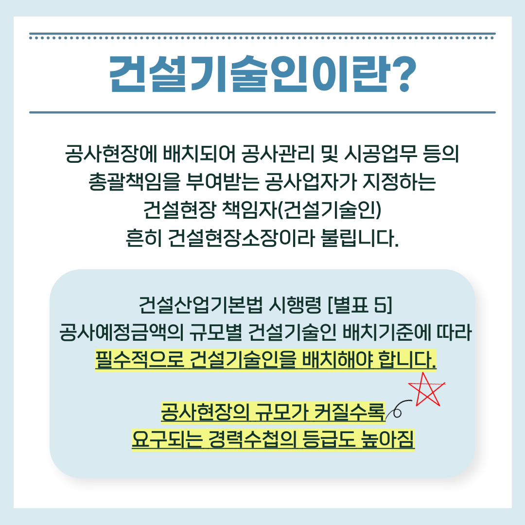 건설 현장소장(현장 대리인) 선임 기준, 건설 기술인 취업 뽀개기!