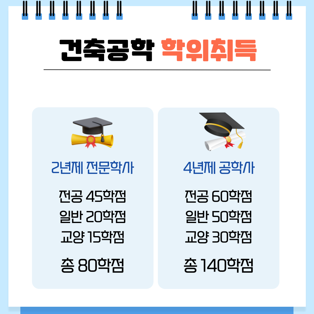 ⁕ 건축 전문 학사 : 80학점(전공 45학점, 교양 15학점, 일반선택 20학점)